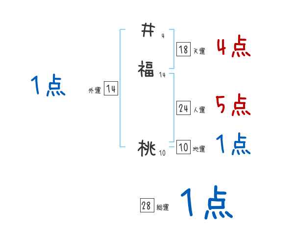井福桃さんの画数の鑑定結果