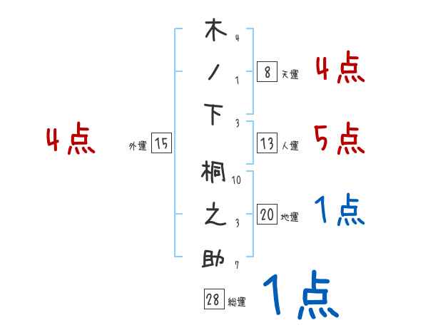 木ノ下桐之助さんの画数の鑑定結果