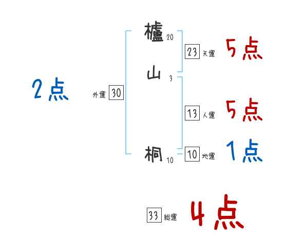 櫨山桐さんの画数の鑑定結果