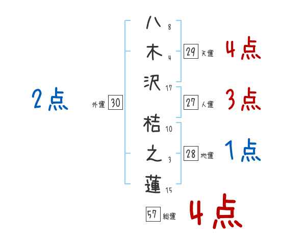 八木沢桔之蓮さんの外運は30画の2つ星