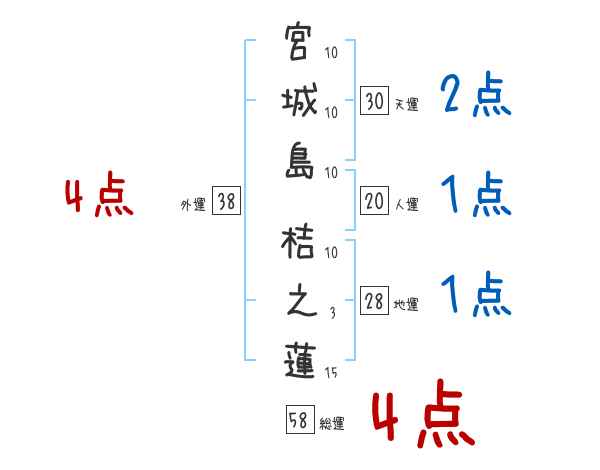 宮城島桔之蓮さんの画数の鑑定結果