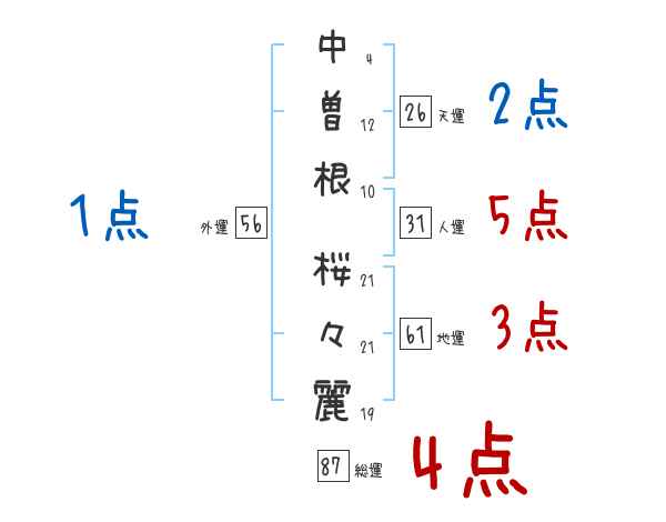 中曽根桜々麗さんの画数の鑑定結果