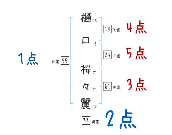 樋口桜々麗さんの画数の鑑定結果