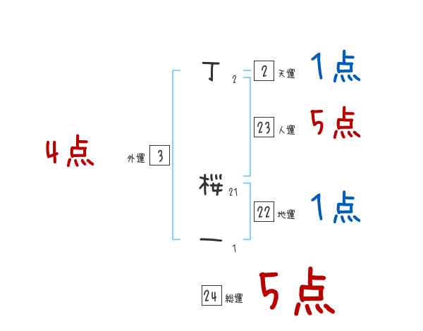 丁桜一さんの画数の鑑定結果