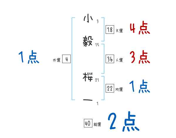 小毅桜一さんの画数の鑑定結果