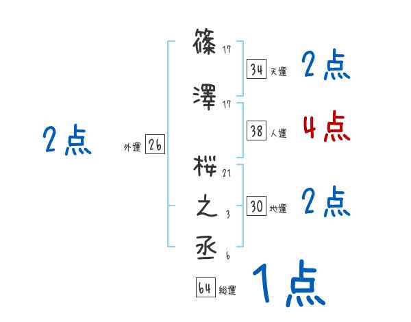 篠澤桜之丞さんの画数の鑑定結果