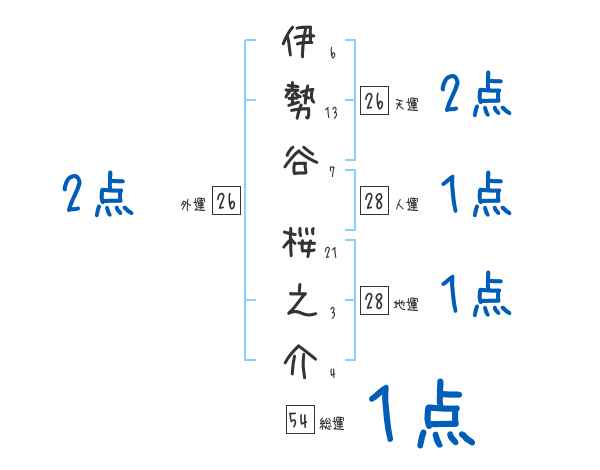 天運![]() | 伊勢谷桜之介さんの天運は26画の2つ星!波瀾万丈かも。信頼できる人を大事にしましょう。 家系が持つ宿命的な運勢を表します。祖先から受け継いだ苗字ですので自分の力が及びません。家柄を象徴します。 |