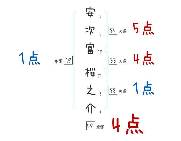 安次富桜之介さんの画数の鑑定結果