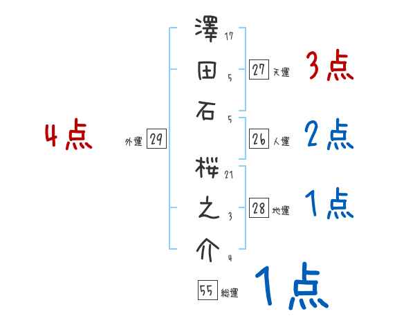 澤田石桜之介さんの画数の鑑定結果