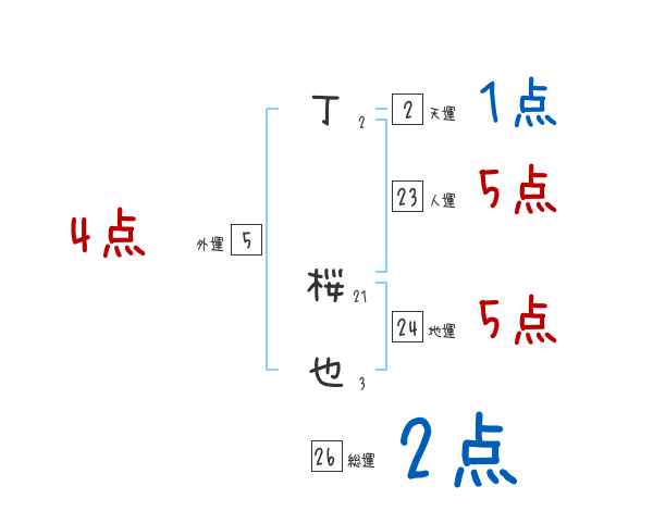 人運![]() | 丁桜也さんの人運は23画の5つ星!想像力に優れ活力がある。一代で成功し名誉を手に入れる。 性格や才能などを表す2番目に重要な運勢です。人間関係や協調性、社会的な成功に影響します。主に20歳から50歳ぐらいまでの中年期の運勢を表します。 |