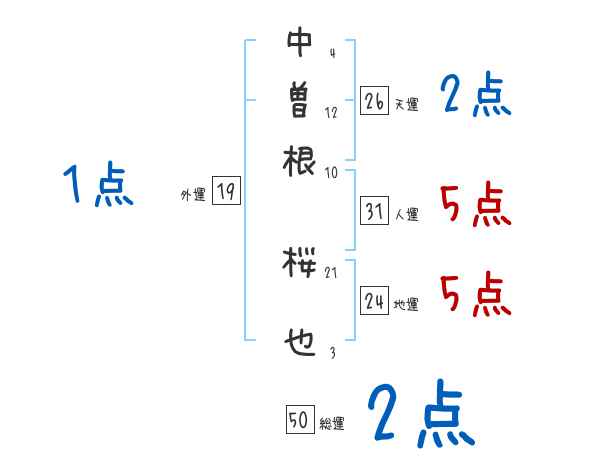中曽根桜也さんの画数の鑑定結果