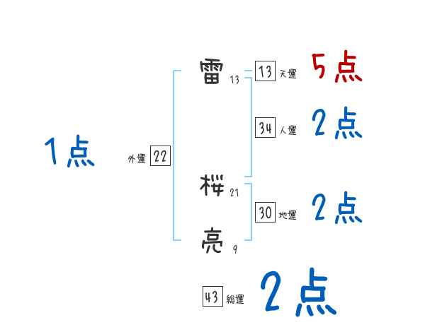 雷桜亮さんの画数の鑑定結果