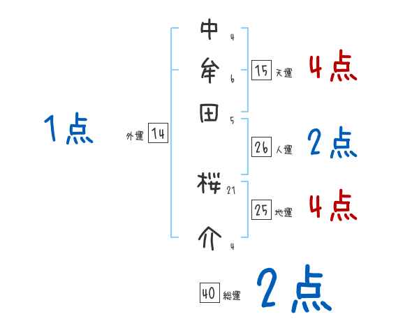 中牟田桜介さんの画数の鑑定結果