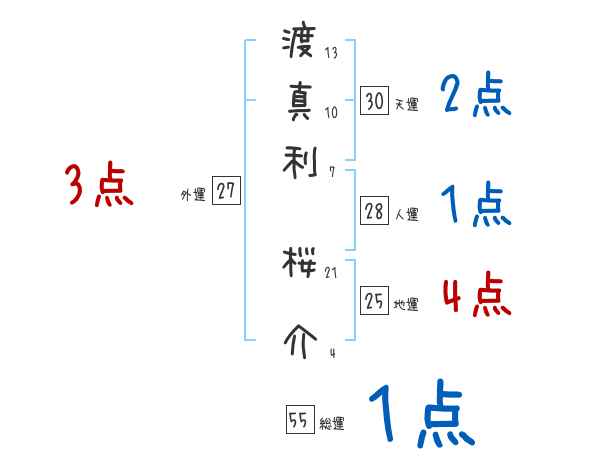 渡真利桜介さんの画数の鑑定結果