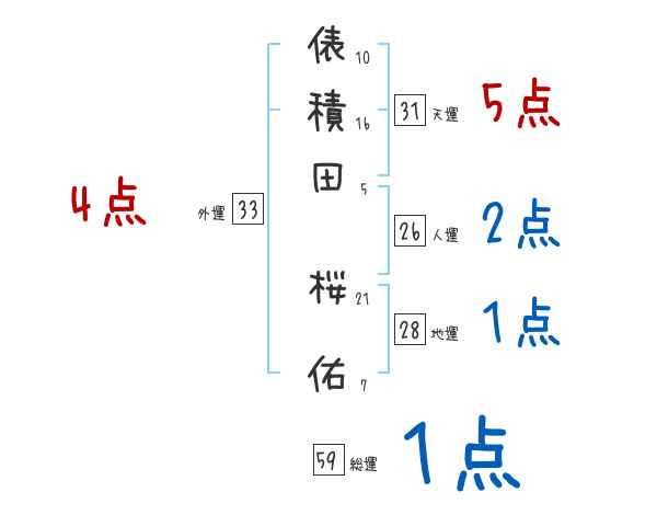 俵積田桜佑さんの画数の鑑定結果