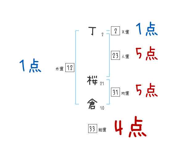 丁桜倉さんの画数の鑑定結果