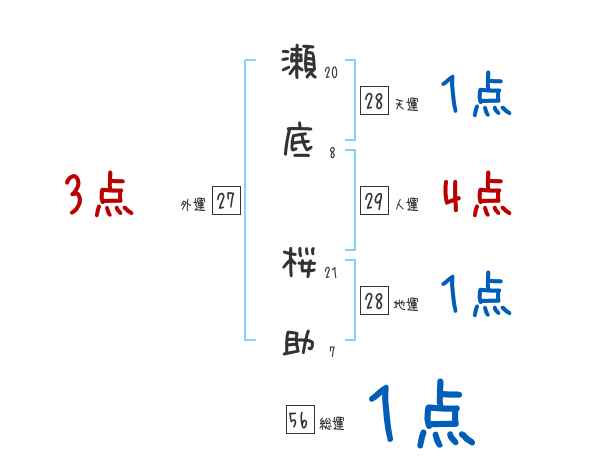 瀬底桜助さんの画数の鑑定結果