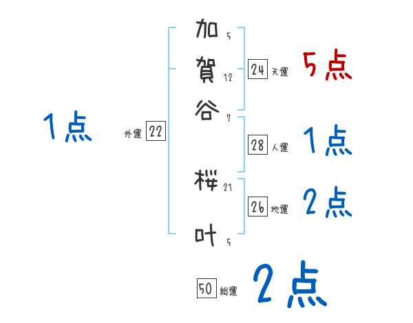加賀谷桜叶さんの画数の鑑定結果