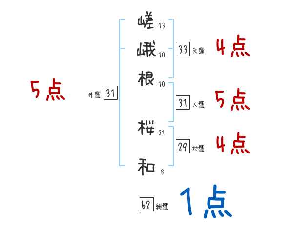 嵯峨根桜和さんの画数の鑑定結果