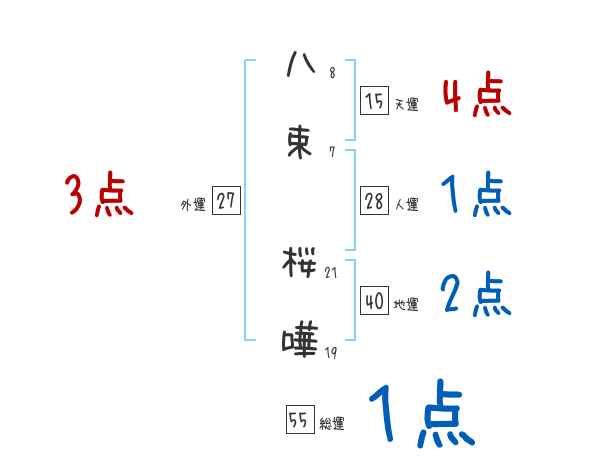 八束桜嘩さんの画数の鑑定結果