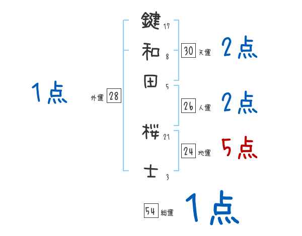 鍵和田桜士さんの画数の鑑定結果