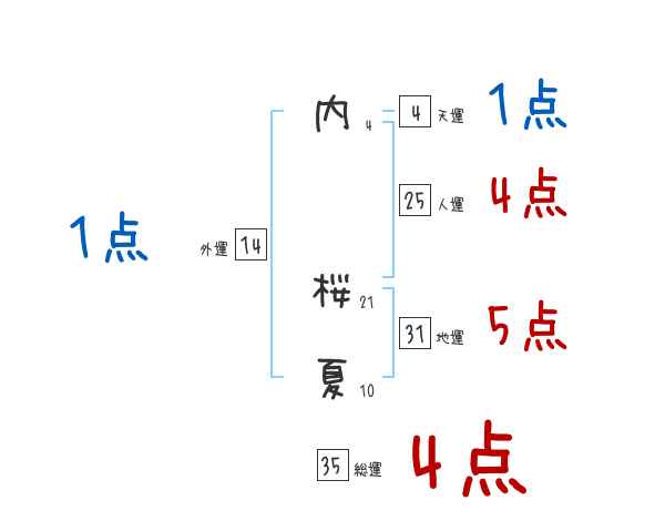 内桜夏さんの画数の鑑定結果