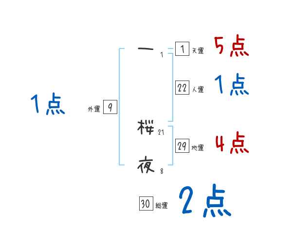 一桜夜さんの画数の鑑定結果