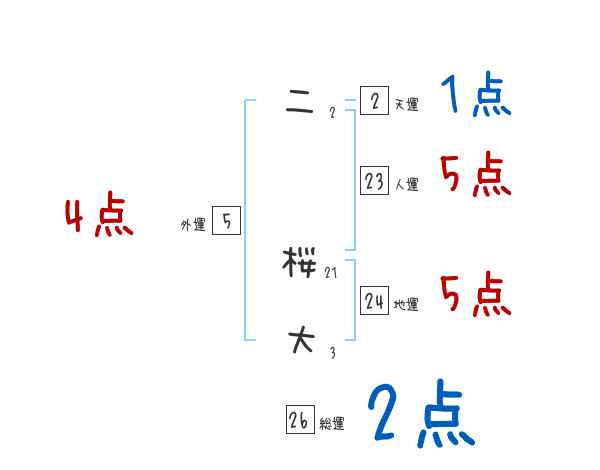 二桜大さんの画数の鑑定結果