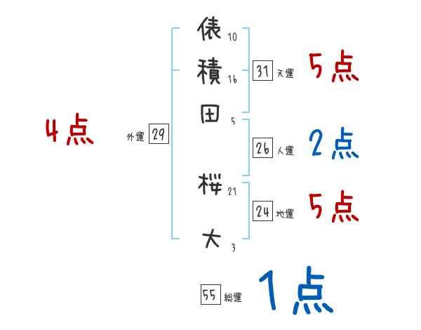 天運![]() | 俵積田桜大さんの天運は31画の5つ星!社交性があり判断力に優れる。順風満帆な人生で円満な生活。 家系が持つ宿命的な運勢を表します。祖先から受け継いだ苗字ですので自分の力が及びません。家柄を象徴します。 |