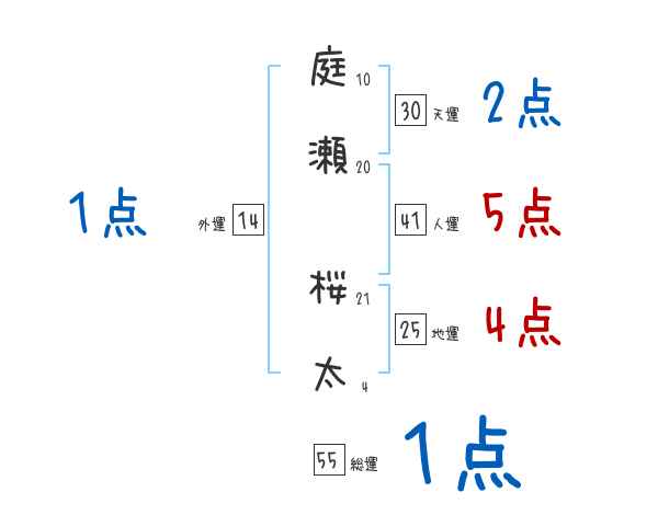 庭瀬桜太さんの画数の鑑定結果