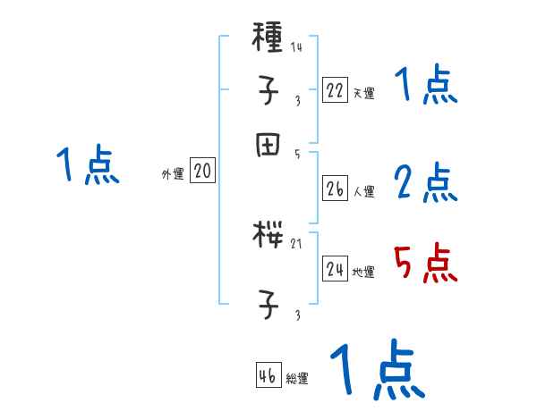 種子田桜子さんの画数の鑑定結果