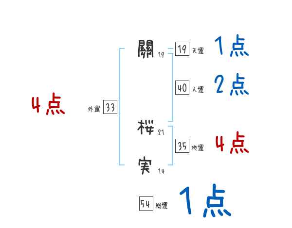 關桜実さんの画数の鑑定結果