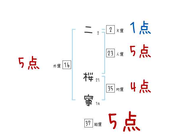 二桜寧さんの画数の鑑定結果