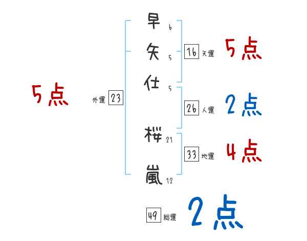 早矢仕桜嵐さんの画数の鑑定結果