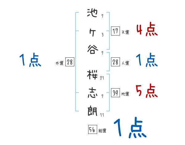 池ヶ谷桜志朗さんの画数の鑑定結果