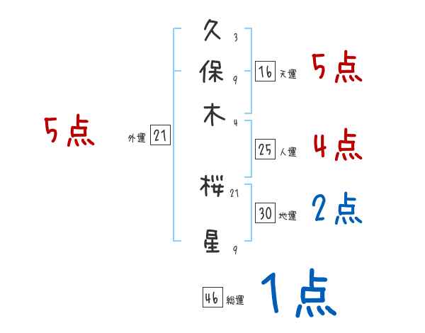 久保木桜星さんの画数の鑑定結果