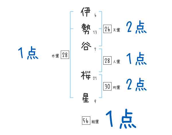 伊勢谷桜星さんの画数の鑑定結果