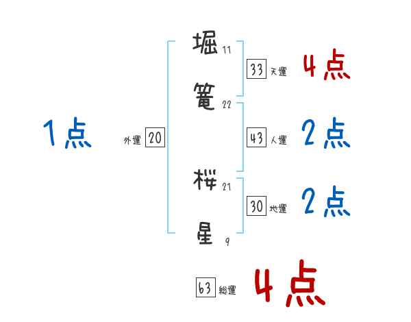 堀篭桜星さんの画数の鑑定結果