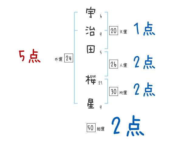 宇治田桜星さんの画数の鑑定結果