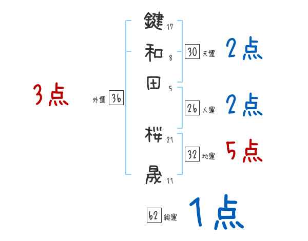 鍵和田桜晟さんの画数の鑑定結果