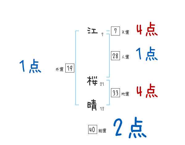 江桜晴さんの画数の鑑定結果
