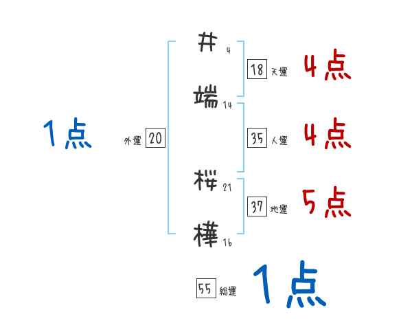 井端桜樺さんの画数の鑑定結果