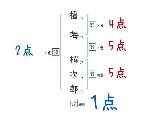 福海桜次郎さんの画数の鑑定結果