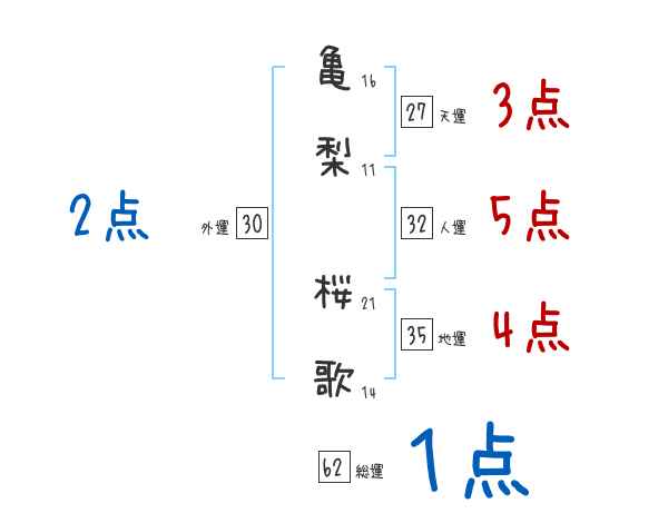 亀梨桜歌さんの画数の鑑定結果