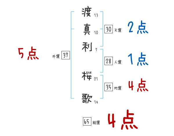 渡真利桜歌さんの画数の鑑定結果