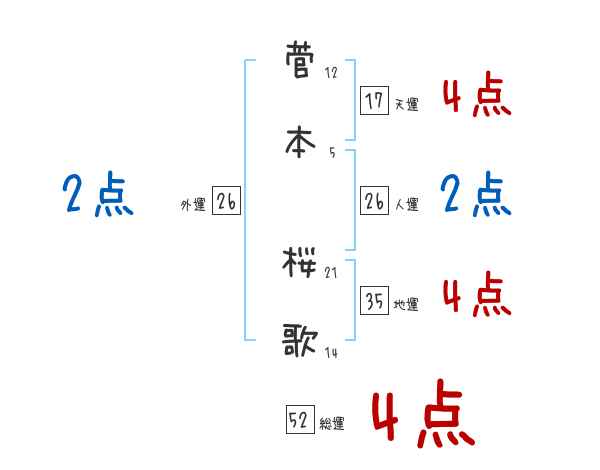 菅本桜歌さんの画数の鑑定結果