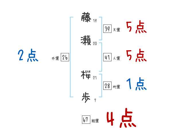 藤瀬桜歩さんの画数の鑑定結果