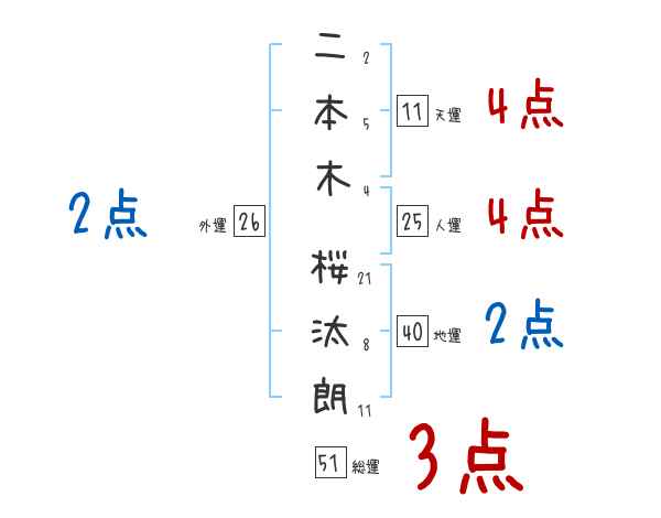 二本木桜汰朗さんの画数の鑑定結果