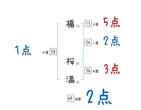 楯桜満さんの画数の鑑定結果