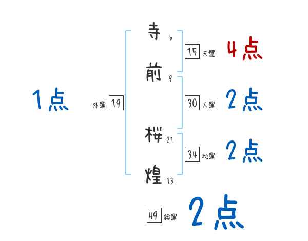 寺前桜煌さんの画数の鑑定結果